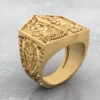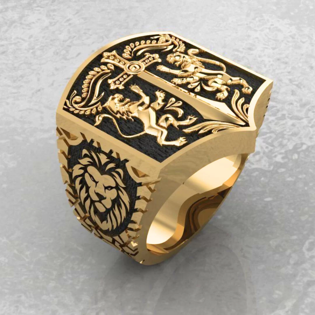 Anel Masculino Leões e Espada em ouro 18k de Alta Joalheria