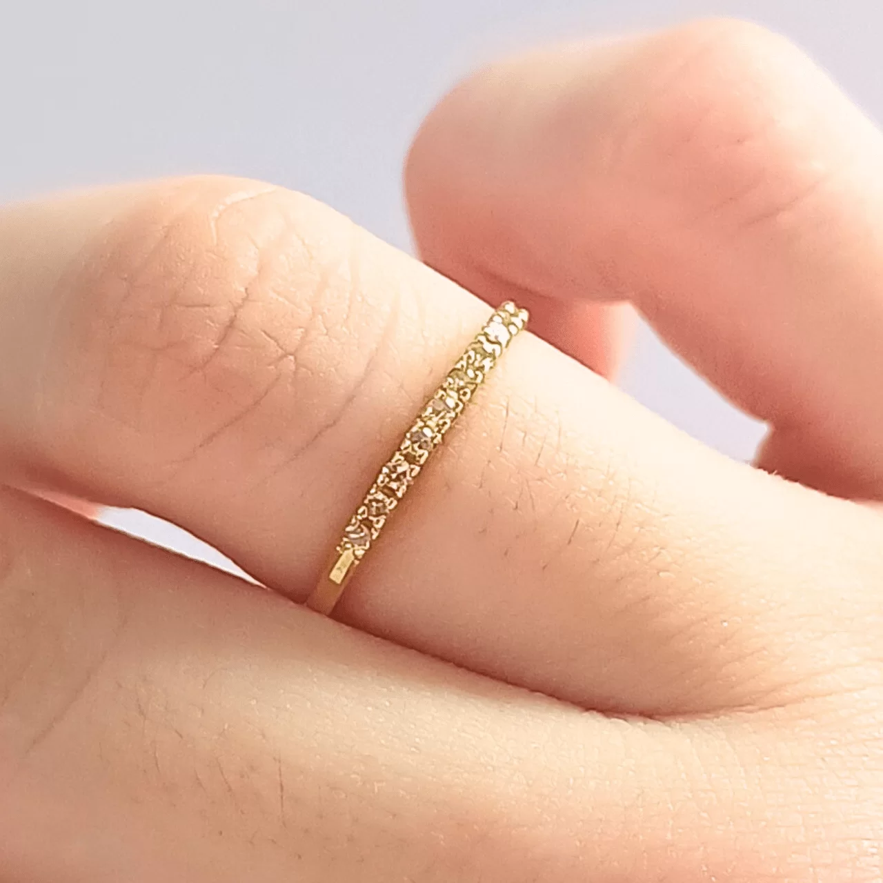 Anel Meia Aliança em Ouro 18k com 9 Diamantes Naturais – 13,5 pontos