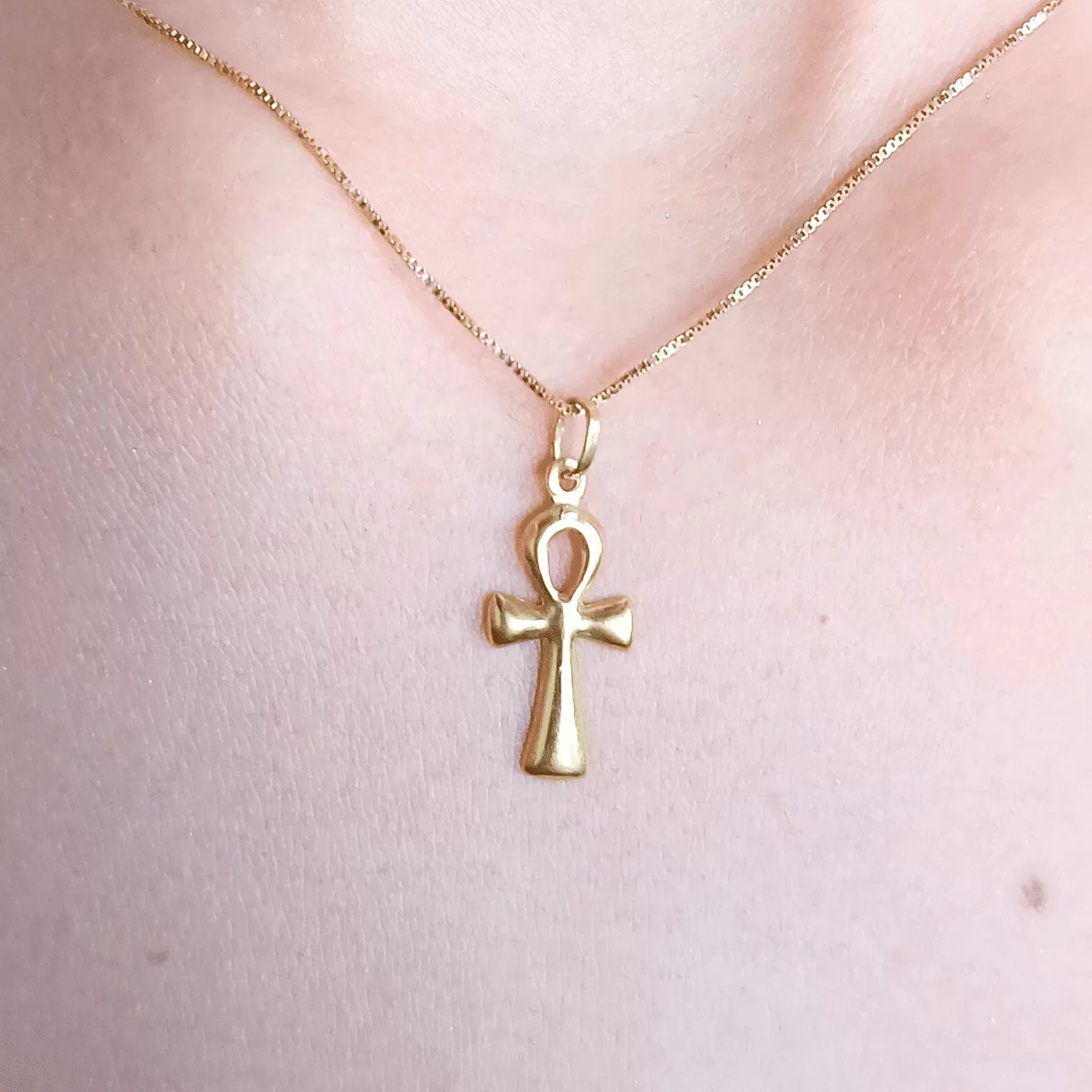 Colar com pingente Cruz Egípcia ANKH em Ouro 18k 750