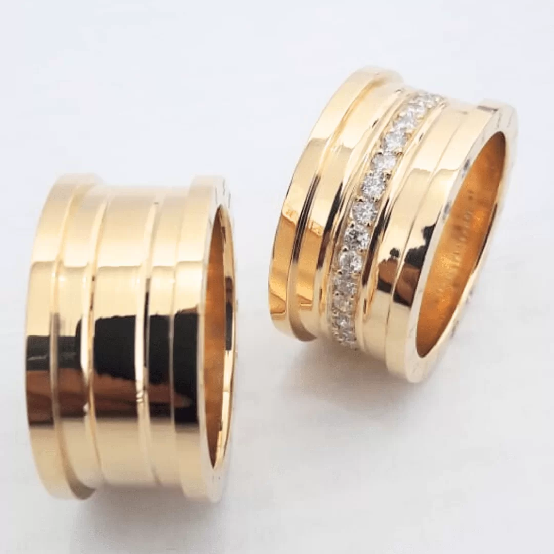 Par Alianças em Ouro 18k Estilo Bulgari com um fileira de Diamantes (30 pontos) – 30 gramas